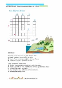 Jeu de mots croisés : des mots de vocabulaire sur l'eau