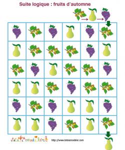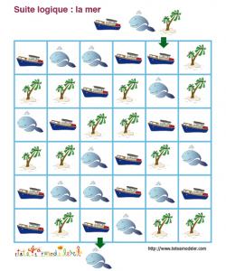 Pour jouer, il suffit d'imprimer le jeu de suite logique de son choix puis de bien observer. Deux sortes de jeux de suite sont proposés, ceux qui demandent de se déplacer sur une grille en suivant une suite logique d'objets et ceux qui demande à l'enfant de terminer une frise logique.