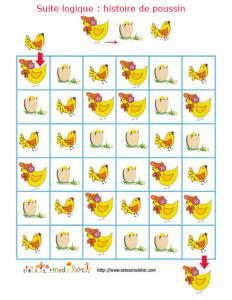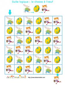 Des jeux de suite logique à imprimer : lapin oeuf poussin Pâques et printemps