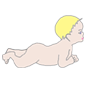 Couché sur le ventre bébé s'appuie sur ses avant bras et soulève sa tête qu'il peut tourner. Bébé commence à prendre goût à cette position, mais il fatigue vite. Bébé peut passer de la position ventrale à la position latérale. |